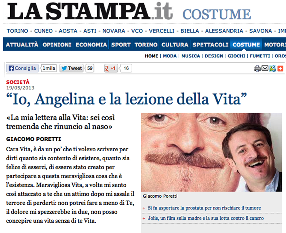 Su altri aspetti più tecnici non mi addentro, non è questa la sede. Penso che scriverò un articolo ad hoc (“la scelta di Jolie”). Zanardo prosegue: “La mia opinione è che non tutte le persone che leggono quello che Angelina Jolie ha scritto, lo capiranno così (…) I media vanno usati con attenzione, specialmente quando si è uno status symbol”.
